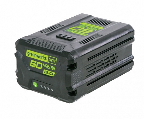 Аккумулятор Greenworks Арт. 2944907, 60V, 5 Ач.Совместимость со всеми устройствами из линейки 60V.Напряжение макс. 60 В, ёмкость 5 Ач.Литий-ионный (Li-ion) аккумулятор.Встроенный LED индикатор показывает заряд в % от максимального:20%-40%-60%-80%.Номинальное время заряда:от зарядного устройства на 2 А - 150 мин.